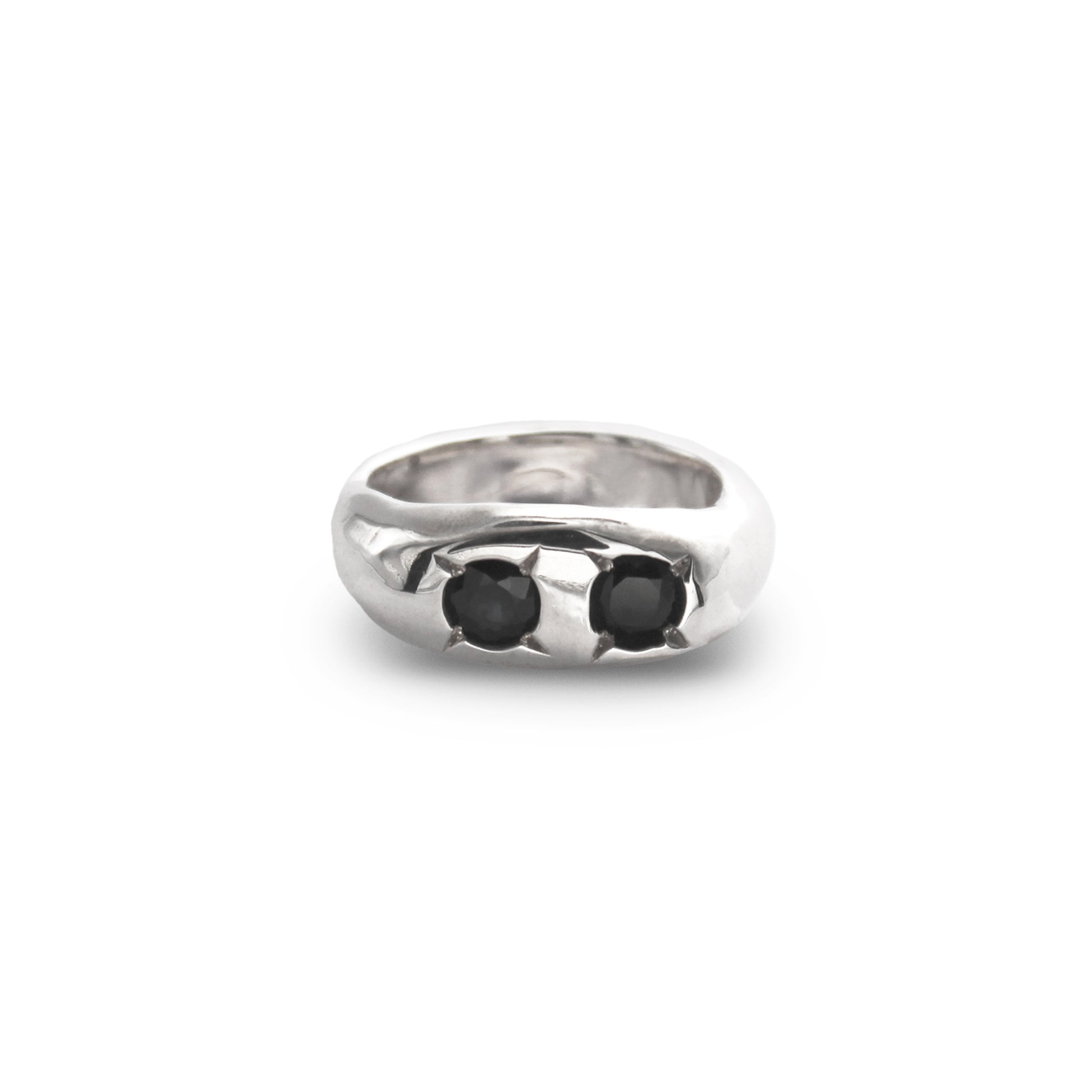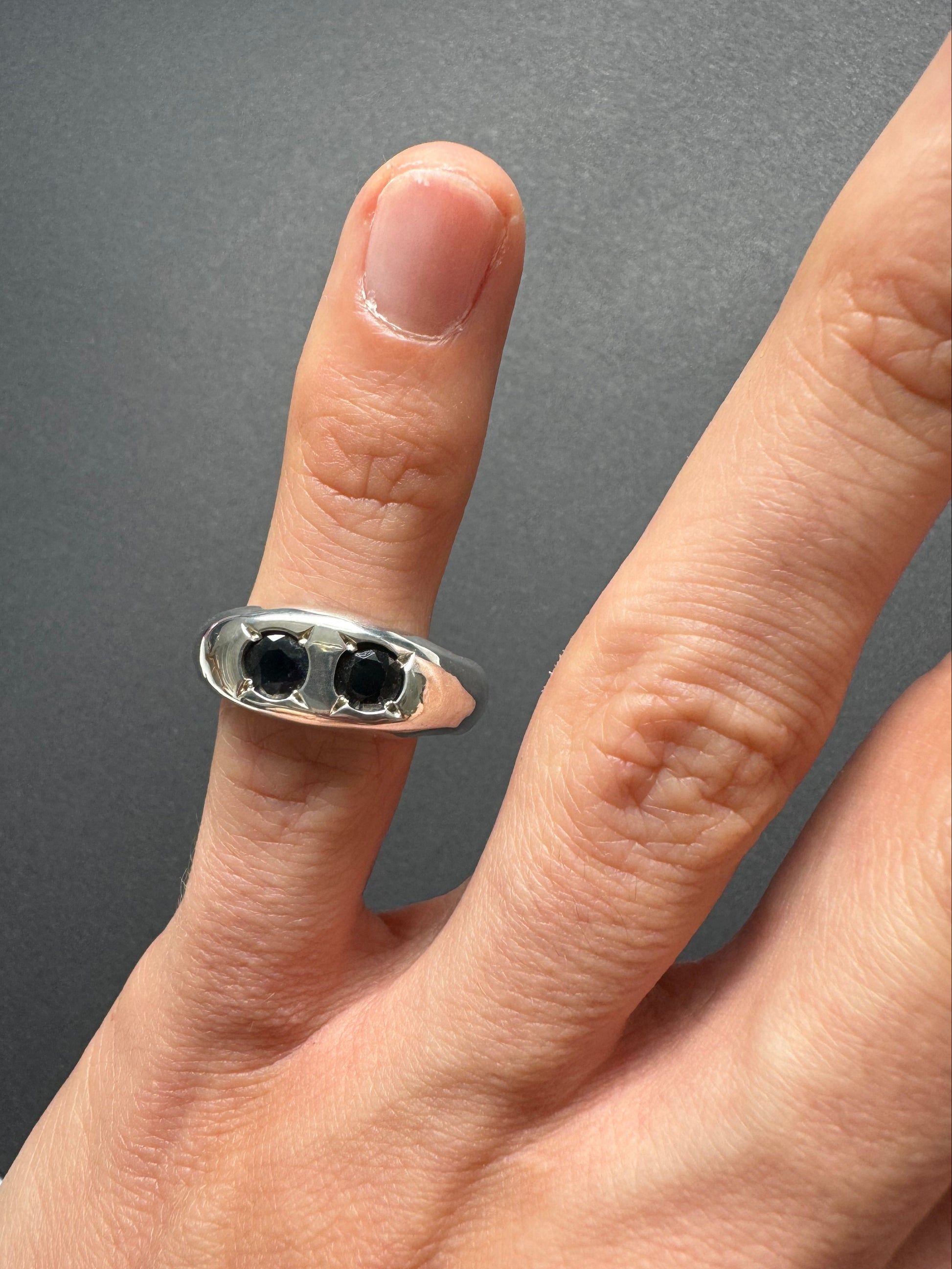 Two 5mm Black Sapphires held in solid .925 recycled sterling silver.